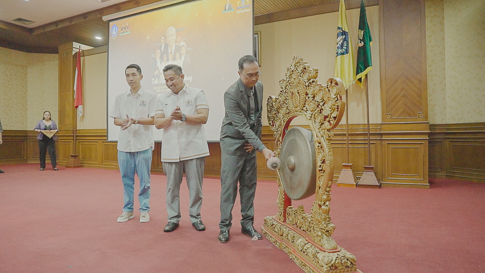 Penjabat (Pj.) Sekretaris Daerah Kabupaten Badung Ida Bagus Surya Suamba membuka acara Talk Show Investasi dan Kewirausahaan Bagi Anak Muda di Kabupaten Badung yang ditandai dengan pemukulan gong. Acara dilaksanakan oleh Kamar Dagang dan Industri (KADIN) Kabupaten Badung, di Ruang Kertha Gosana, Puspem Badung, Selasa (1/10) turut dihadiri Kepala OPD terkait di Lingkungan Pemkab. Badung, Kepala Kantor perwakilan Bursa Efek Indonesia Bali I Gusti Agus Andiyasa, Ketua KADIN Denpasar I Putu Arnawa, Ketua Umum Himpunan Pengusaha Muda Indonesia (HIPMI) Badung I Made Agus Hermanta, Ikatan Wanita Pengusaha Wanita (IWAPI) Kabupaten Badung Ayu Dewi, beserta para Ketua Organisasi Kewirausahaan Provinsi Bali dan para peserta seminar.