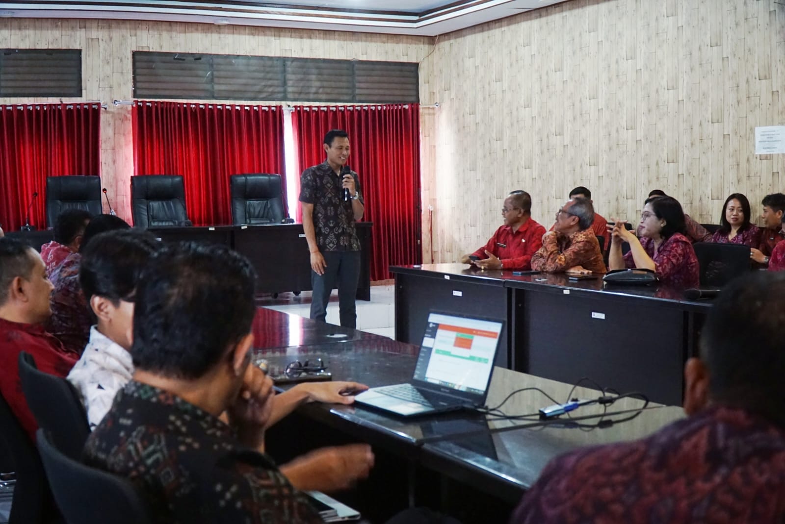 Pemerintah Kabupaten Bangli mengadakan kegiatan sosialisasi dan bimbingan teknis (bimtek) terkait penggunaan aplikasi Bangli Virtual Office (BVIO) untuk seluruh Perangkat Daerah (PD) di lingkungan Pemkab Bangli. Acara ini bertujuan untuk meningkatkan efisiensi dan transparansi dalam pelayanan publik serta pengelolaan administrasi pemerintahan.
