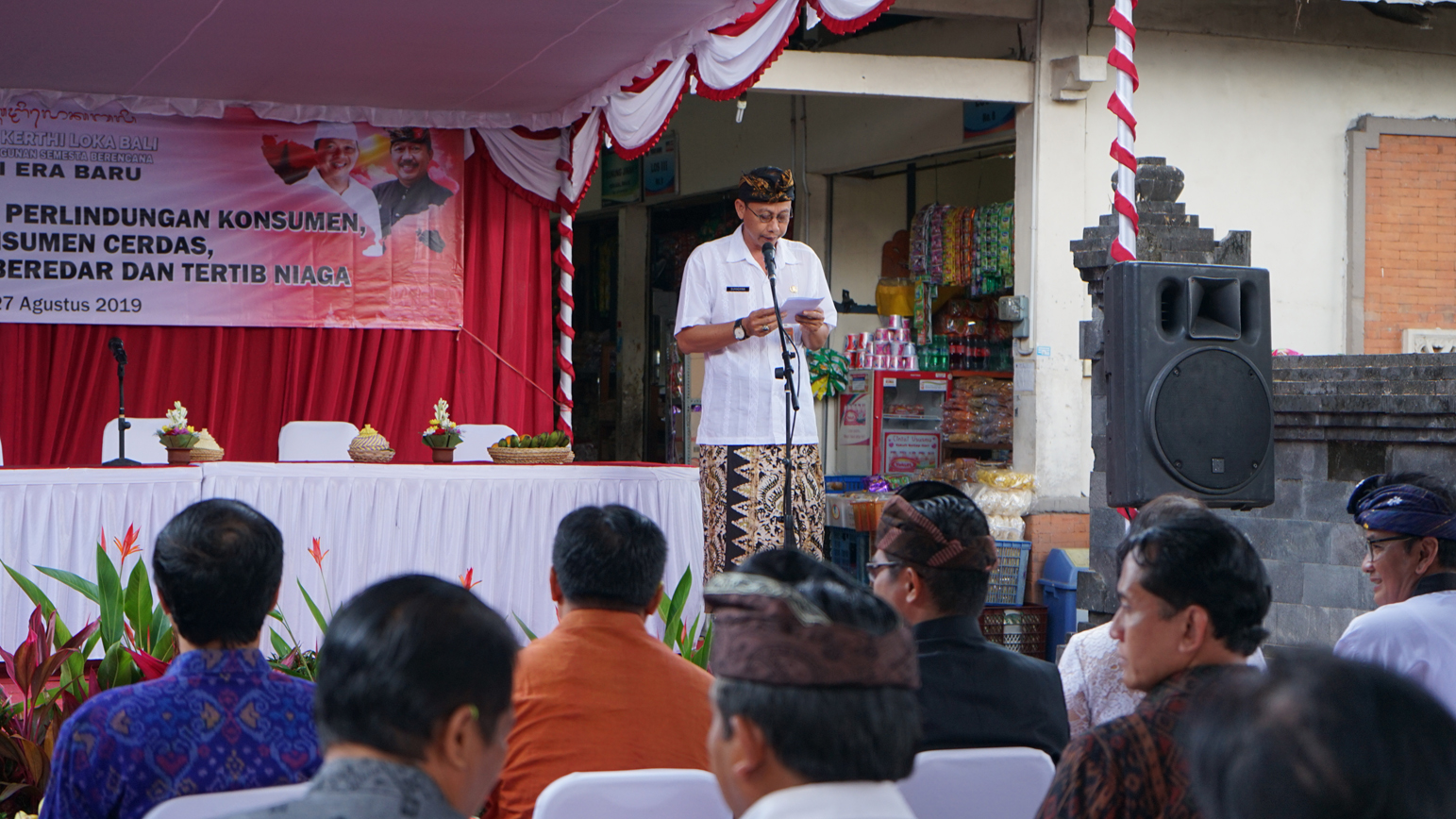 Acara Penyelenggaraan Aksi Perlindungan Konsumen Edukasi Konsumen Cerdas Pengawasan Barang Beredar dan Tertib Niaga dibuka secara resmi Kepala Bidang Metrologi dan Tertib Niaga Disperindag Kota Denpasar Putu Gede Sukadana Selasa (27/8) di Pasar Agung.