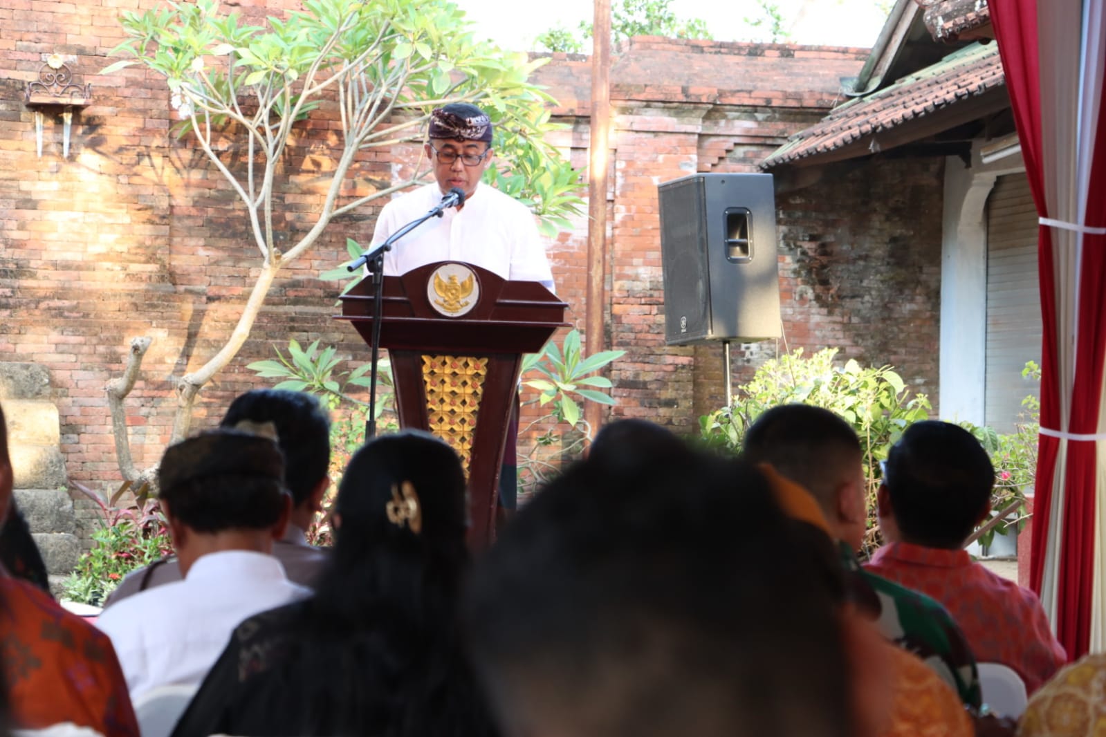 Ket Foto :Â Walikota Denpasar IGN Jaya Negara saat memberikan sambutan pada Sarasehan Peringatan Puputan Margarana ke 77 di pelataran Puri Kesiman, Jumat (17/11) petang.Â