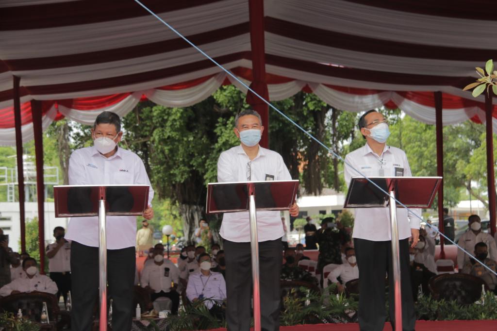Direktur Jenderal Perkeretaapian mewakili Menteri Perhubungan menghadiri kegiatan Pelepasan Kereta LRT Jabodebek Trainset Ke-31 di Kantor Pusat PT.INKA Madiun pada Kamis (14/10). Kegiatan yang dilaksanakan secara daring dan luring ini dihadiri secara daring oleh Menteri Koordinator Bidang Kemaritiman dan Investasi, dan secara luring oleh jajaran direksi PT INKA, jajaran direksi PT KAI, serta jajaran pejabat Pemerintah Daerah Kota Madiun.