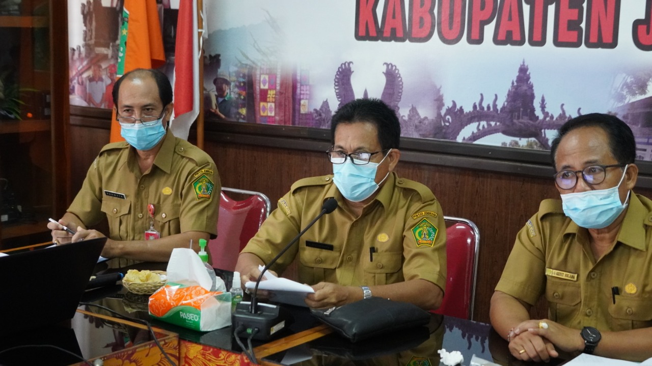 Plh Bupati Jembrana I Nengah Ledang menghadiri sekaligus memberikan arahan dalam pelaksanaan forum perangkat daerah/lintas perangkat daerah tahun 2021 penyusunan rancangan RKPD Kabupaten Jembrana tahun 2022 di Ruang Rapat Bappeda Litbang Kabupaten Jembrana, Senin (22/02/2021). Turut hadir dalam kegiatan tersebut Kepala OPD dilingkungan Pemkab Jembrana, serta Camat seluruh Jembrana.