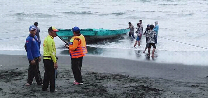 Sebuah perahu yang mengangkut dua orang terhantam ombak di Pantai Cucukan, Desa Medahan, Kecamatan Blahbatuh Gianyar, Minggu (5/1/2020) malam, akibat peristiwa tersebut satu orang korban yang tenggelam belum ditemukan.