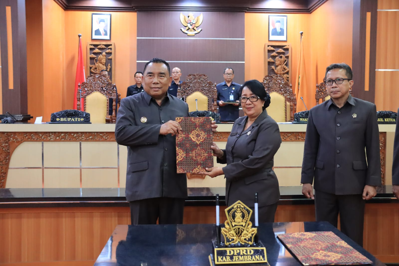 Sidang dipimpin langsung oleh Ketua DPRD Jembrana Ni Made Sri Sutharmi turut dihadiri secara langsung oleh Bupati Jembrana I Nengah Tamba, jajaran Forkopimda serta Kepala OPD dilingkungan Pemkab Jembrana.