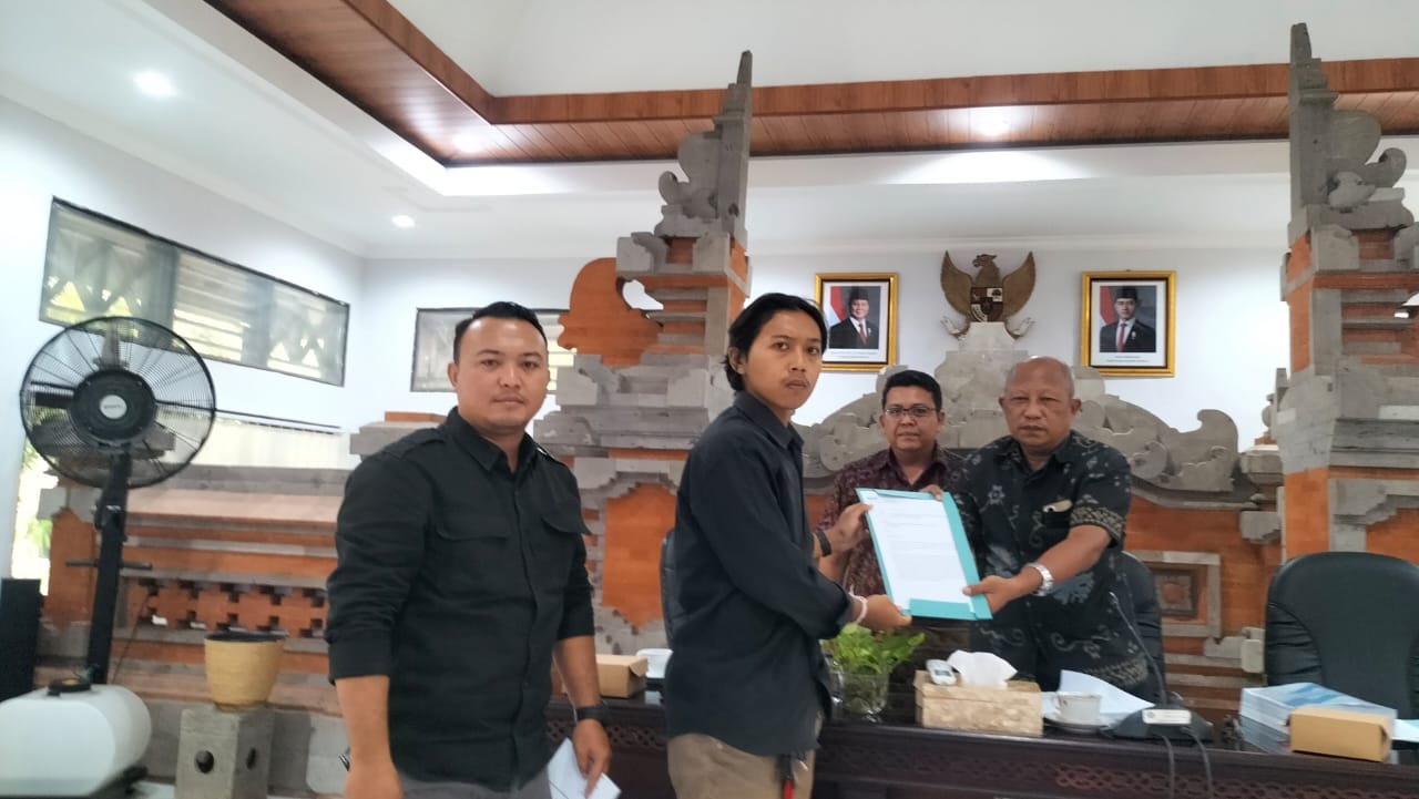 Surat tanggapan kemudian diserahkan oleh I Wayan Sathya Tirtayasa bersama Made Krisna Bokis Dinata, S.Pd., M.Pd. dan diterima oleh I Made Teja selaku pimpinan rapat dan Kepala DKLH Bali. (RED-BN)