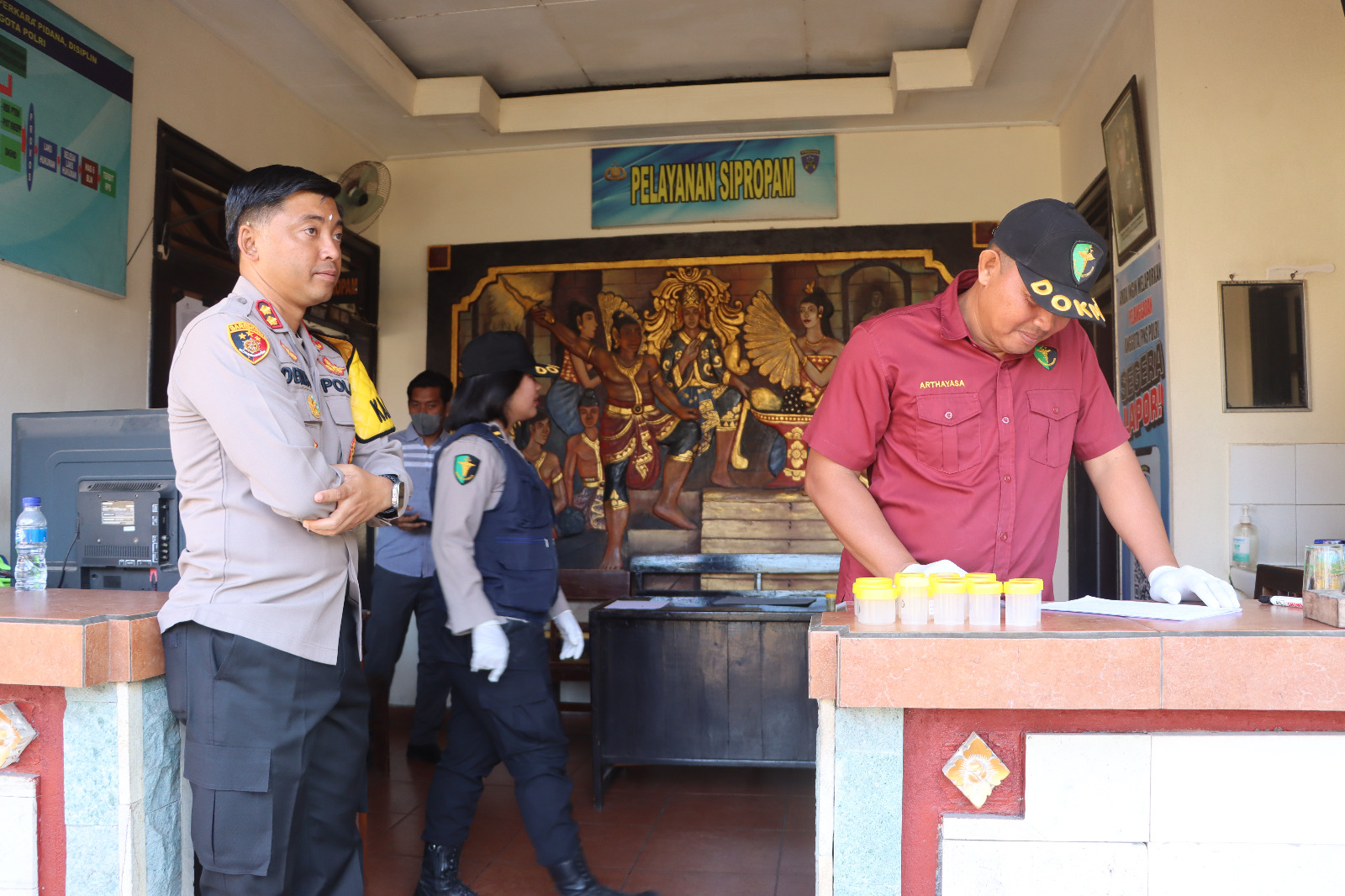 Personil Sipropam Polres Jembrana dan Propam Polsek Negara serta Kota Jembrana menjalani tes urin, Selasa (22/8/2023).