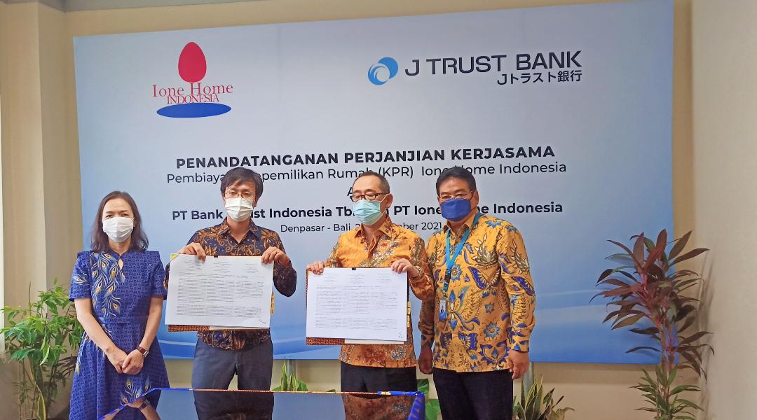 PT Bank JTrust Indonesia Tbk (J Trust Bank) melakukan penandatangan kerja sama dengan PT IOne Home Indonesia, untuk pembiayaan kepemilikan perumahan kawasan hunian di Tabanan, Bali dan Mataram, Nusa Tenggara Barat. Penandatanganan kerja sama tersebut dilakukan oleh Direktur Utama J Trust Bank Ritsuo Fukadai bersama Direktur J Trust Bank Djoko Prayitno dan Direktur Utama PT IOne Home Indonesia Akira Musumi dan Direktur Reiko Kakegawa.