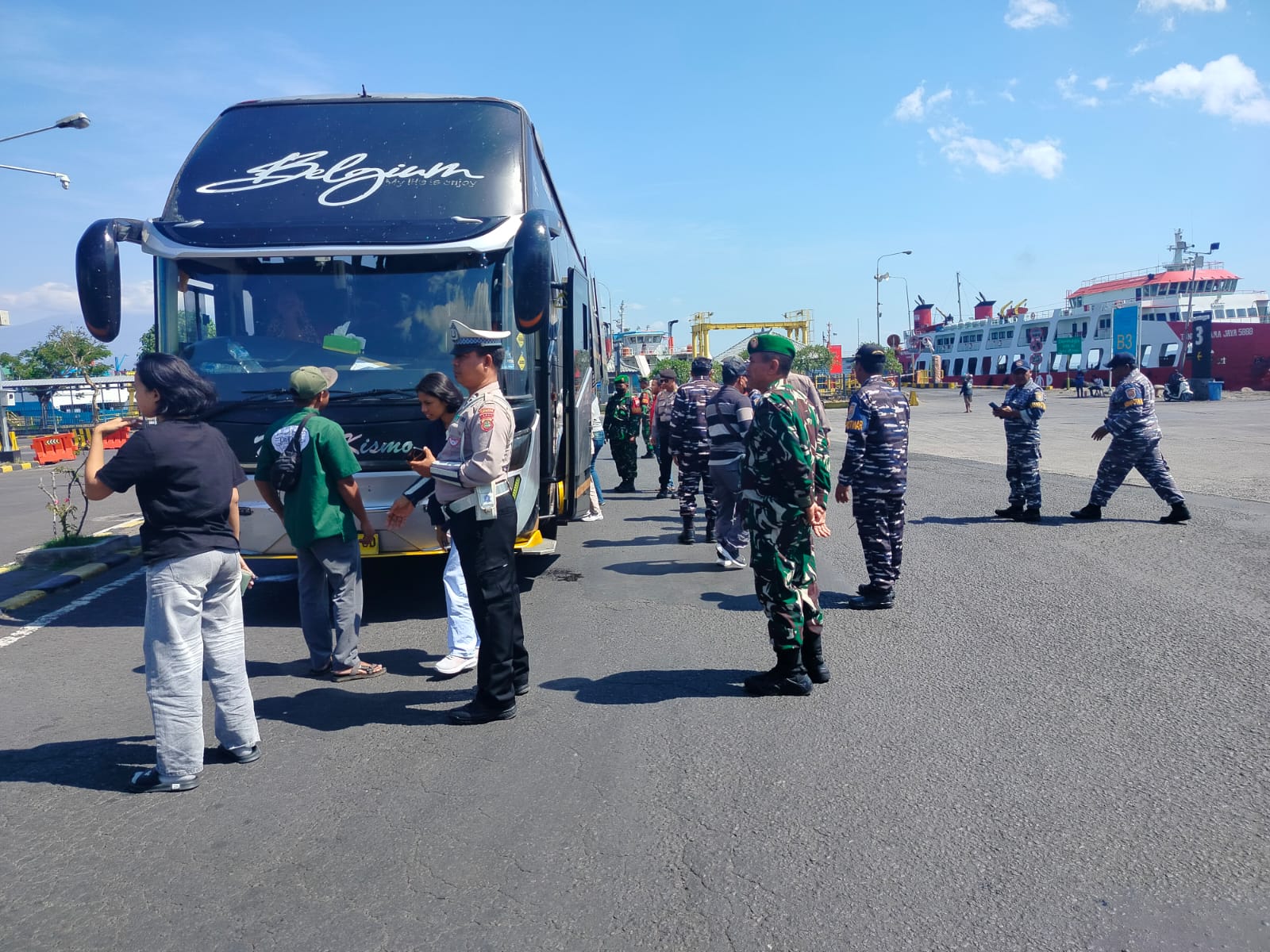 Pasca demontrasi di depan gedung DPRD Jembrana, petugas gabungan memperketat pemeriksaan di Pelabuhan Gilimanuk, Kabupaten Jembrana, Senin (1/9/2025).