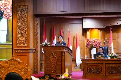 Bupati Badung I Wayan Adi Arnawa menyampaikan Pidato Pengantar terhadap Laporan Keterangan Pertanggungjawaban (LKPJ) Bupati Badung Tahun 2025, pada Rapat Paripurna DPRD Kabupaten Badung Masa Persidangan Kedua Tahun Sidang 2025-2026, yang dilaksanakan di Ruang Sidang Utama Gosana, Sekretariat DPRD Kabupaten Badung, Selasa (31/3/).