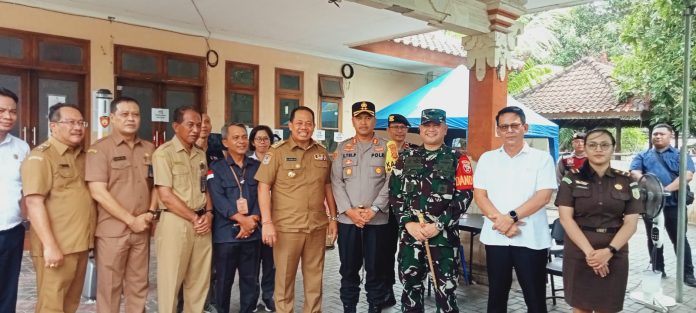 Selain Komisioner KPU Jembrana, PJ Gubernur Bali, Sang Made Mahendra Jaya juga disambut Kapolres Jembrana AKBP Endang Tri Purwanto, Dandim 1617/Jembrana Letkol Inf. M Adriansyah dan Sekda Jembrana, Made Budiasa. (Komang Tole)