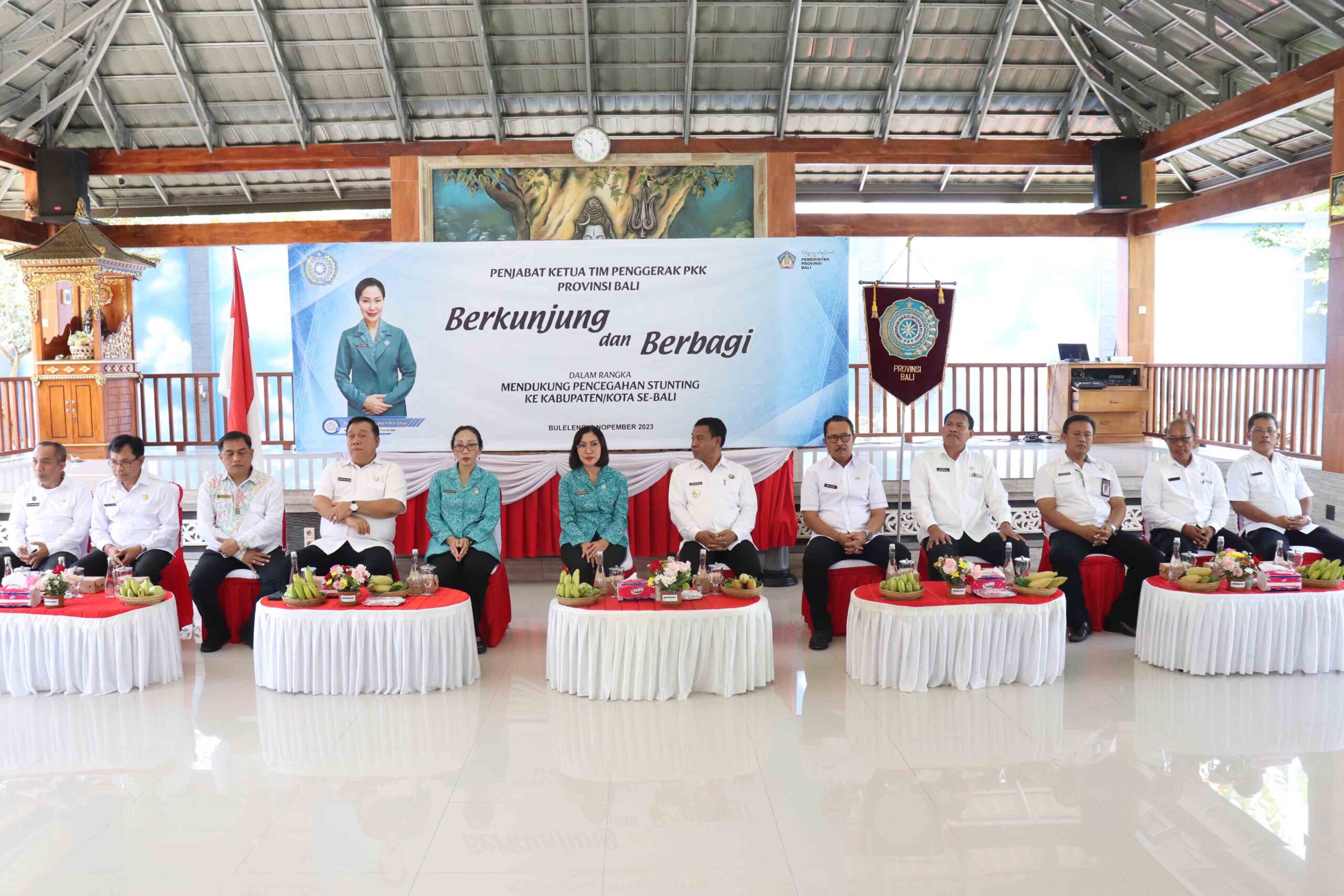 Usai kegiatan tersebut, Pj. Ketua TP. PKK Provinsi Bali Ny. Ida Mahendra Jaya mengunjungi balita yang terindikasi stunting. Dalam kunjungannya, Ny. Ida Mahendra memberikan bantuan berupa paket makanan sehat dan juga susu.