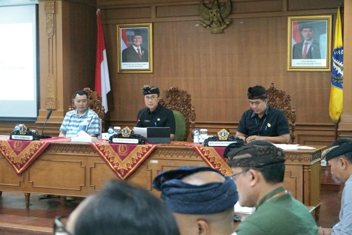 Pj. Sekretaris daerah (Sekda) Kabupaten Badung IB. Surya Suamba menerima Direktur Utama (Dirut) Perusahaan Umum Daerah (Perumda) Tirta Bhagasasi Kabupaten Bekasi Reza Lutfi beserta jajaran Direksi, Dewan Pengawas dan staf dalam rangka study tiru mengenai peningkatan kualitas pemahaman penyelenggaraan kegiatan proyek kerjasama pengembangan jaringan perpipaan air bersih dengan pihak ketiga, bertempat di Ruang Kriya Gosana, Puspem Badung, Kamis (5/12).