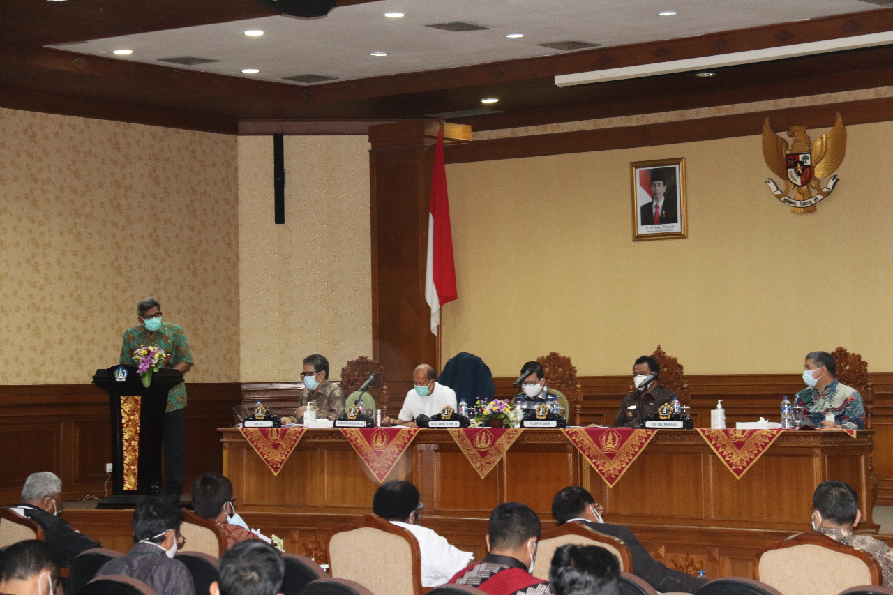 Dalam pertemuan tersebut juga diisi dengan pemaparan penanganan Covid-19 di Kabupaten Badung oleh Kadis Kesehatan dr. I Nyoman Gunartha. Dikatakan perkembangan klaster-klaster baru Covid-19 telah merasuk kesegala kehidupan di masyarakat baik di kota maupun didesa- desa di Bali. Ini tentu perlu penanganan yang serius baik dari pemerintah maupun masyarakat, mengingat pandemi ini telah menjadi momok kehidupan yang sangat mengerikan bagi jalan kehidupan masyarakat. “Kami Pemerintah Kabupaten Badung mencoba dengan berbagai cara untuk memutus mata rantai penyebaran Covid-19. Berbagai kebijakan dari Pemkab Badung sudah dijalankan terhadap masyarakat yang terdampak seperti penggratisan biaya PDAM, pemberian sembako untuk masyarakat paling terdampak (keluarga kurang mampu/KPM), insentif untuk masyarakat Badung yang di PHK/dirumahkan, memberikan rumah singgah untuk PMI/ABK dan tenaga kesehatan, pembiayaan BPJS, pengadaan masker untuk masyarakat Badung serta pengadaan APD dan insentif kepada tenaga medis.