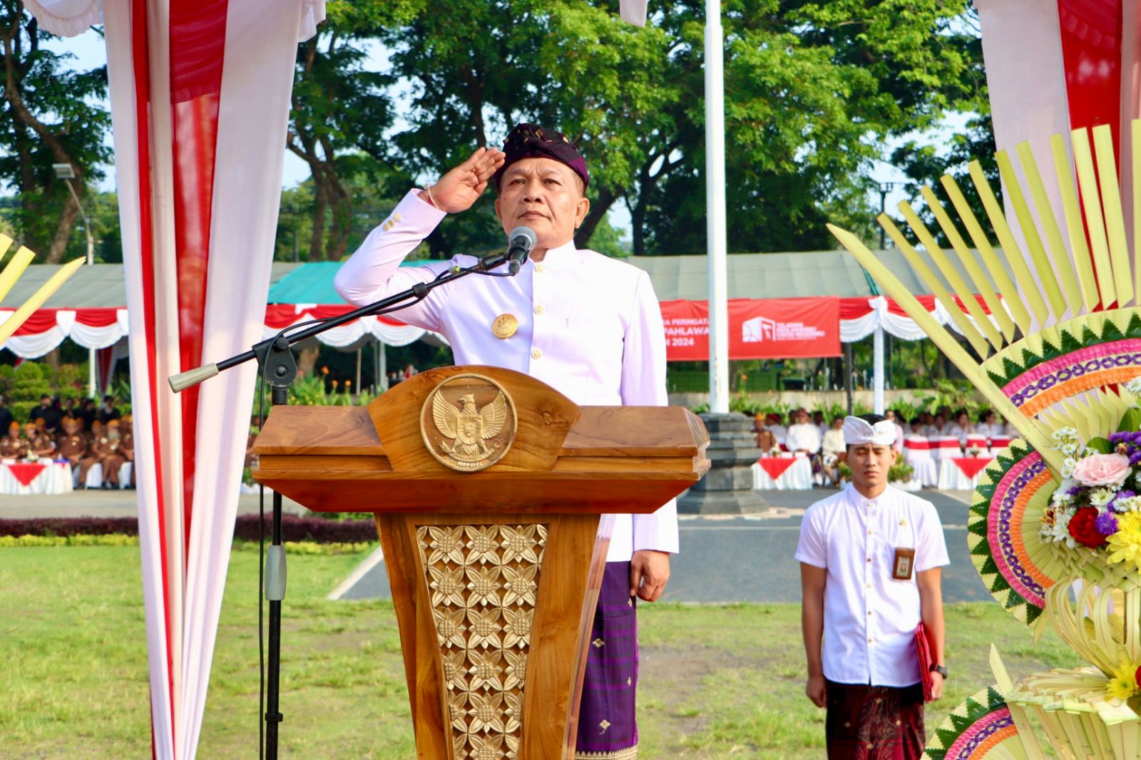Pjs. Walikota Denpasar, I Dewa Gede Mahendra Putra memimpin Apel Bendera Peringatan Hari Pahlawan Tahun 2024 di Kota Denpasar yang digelar di Lapangan Lumintang, Denpasar, Minggu (10/11). Hari Pahlawan yang diperingati setiap tanggal 10 November ini menjadi momentum Pemkot Denpasar untuk mengenang pahlawan dengan segenap pemikiran, tindakan dan gerakan perjuangan yang dilakukan untuk Bangsa Indonesia.