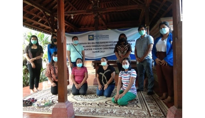 Beranjak dari permasalahan diatas Fakultas Kedokteran dan Ilmu Kesehatan (FKIK) Universitas Warmadewa telah melaksanakan kegiatan pengabdian masyarakat (PKM) pada kelompok ibu di Banjar Tohpati Desa Kesiman Kertalangu, Denpasar. Kegiatan penyuluhan dan pendampingan ini dikoordinir oleh dosen FKIK Unwar Dr. Anak Agung Gede Indraningrat S.Si.,M.Sc pada hari Sabtu, 29 Mei 2021 yang melibatkan 2 orang dosen dan 2 orang mahasiswa dengan tetap mengikuti prokes 3M. Sebanyak lima orang perwakilan kelompok ibu di Banjar Tohpati Desa Kesiman Kertalangu terlibat dalam kegiatan ini dan juga akan berperan sebagai kader gizi sehat keluarga. Berdasarkan hasil diskusi diketahui bahwa mitra ingin memiliki pengetahuan tentang cara mengolah makanan sehat dan bisa meningkatkan imunitas tubuh. Diharapkan pula makanan yang dibuat ini bisa menjadi sumber tambahan pendapatan bagi mitra. Sebagai tindak lanjut atas permasalaha mitra, maka PKM difokuskan pada pengenalan gizi sehat melalui pembuatan panganan yoghurt dan cara pemasarannya untuk meningkatkan pendapatan mitra.