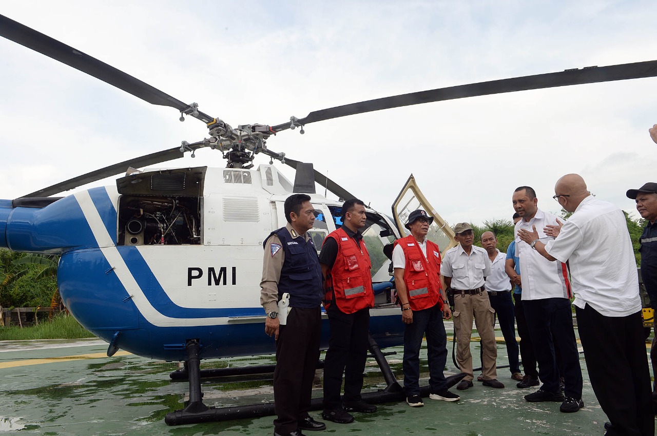 menggunakan heli PMI nampak puluhan titik longsoran dan sisa sisa banjir..Selain di Kabupaten Bogor, PMI juga akan menerjukan Helikopter ke Kabupten Lebak,Propinsi Banten yang mengalami Banjir Bandang dan Tanah longsor