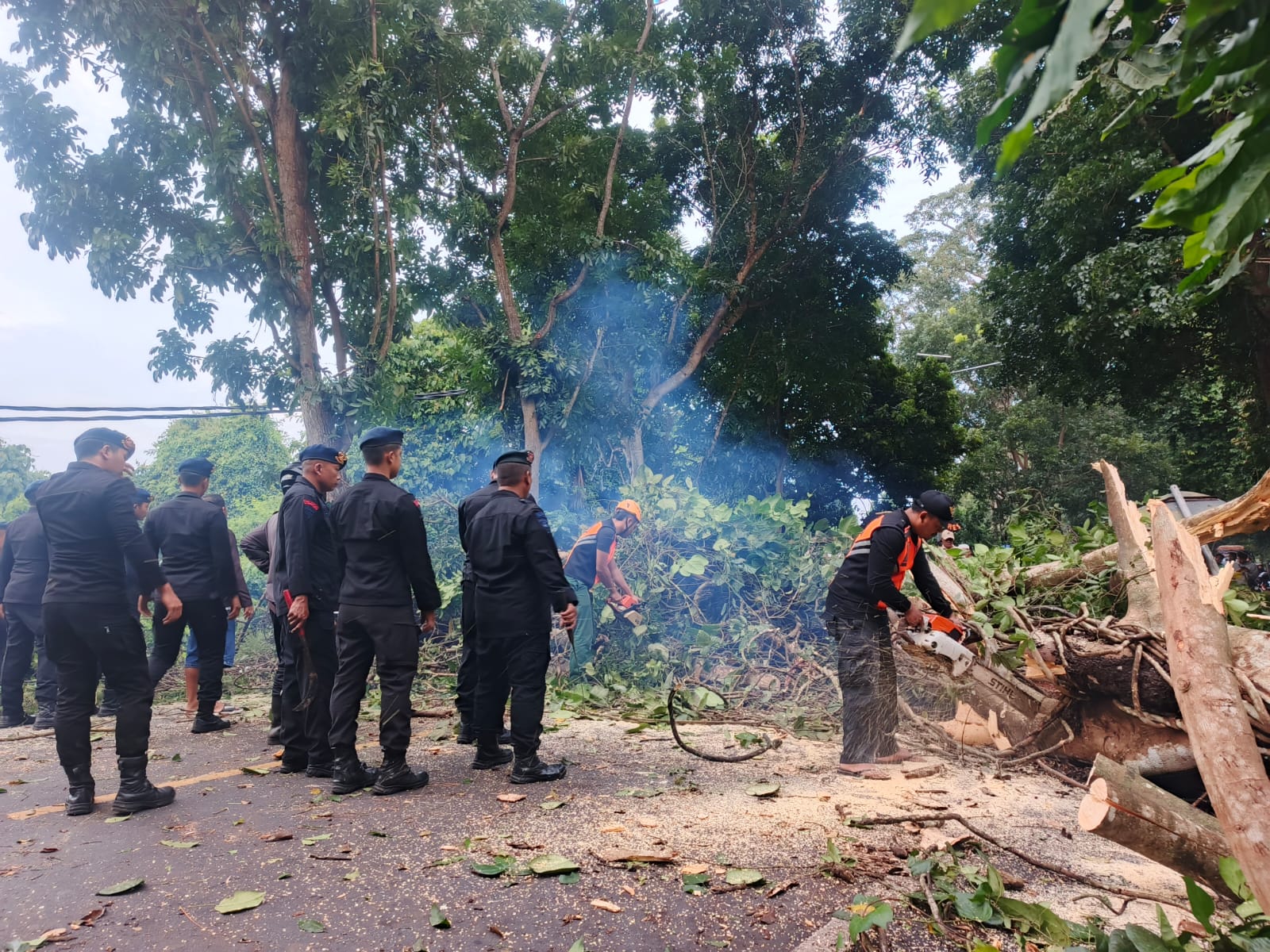 Kapolsek Melaya Kompol Ketut Sukadana, Jumat (27/3/2026), membenarkan peristiwa pohon tumbang. “Sudah dilakukan evakuasi, arus lalin sudah kembali lancar,” ujarnya. (Komang Tole)