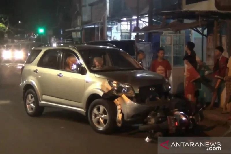 Mobil kemudian oleng ke kanan dan menabrak dua pengendara sepeda motor yang dikendarai  AS dan AB. AS mengendarai Honda Vario dengan nomor plat B-4019-SER dan AB mengedarai Honda Vario dengan nomor plat B-4188-SBB yang sedang berhenti di sebelah kanan jalan.