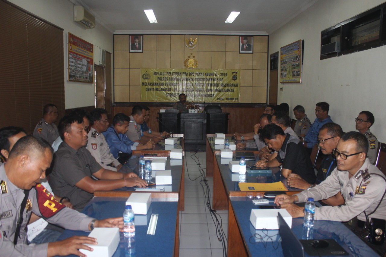 Menjelang operasi pekat agung II tahun 2019, Polres Gianyar menggelar lat pra operasi agar para anggota yang terlibat operasi mengetahui serta memahami pelaksanaan tugasnya sesuai dengan vidang bidang tugasnya sehingga operasi dapat berjalan dengan lancar dan sesuai dengan target operasi berasas manfaat di Mapolres Gianyar, Kamis (21/11/2019).