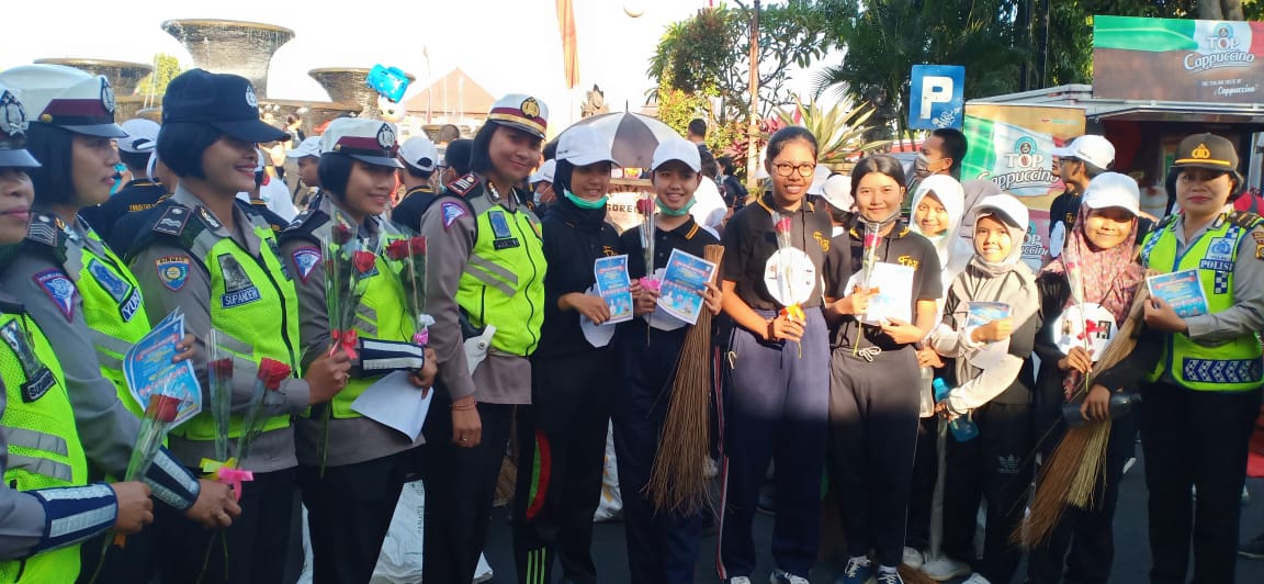 Dalam pantauan metrobali.com tampak terlihat para Polwan secara simpatik dan humanis membagikan bunga dan brosur di Jalan Ngurah Rai Singaraja yang steril kendaraan bermotor lantaran bertepatan dengan pelaksanaan Car Free Day.