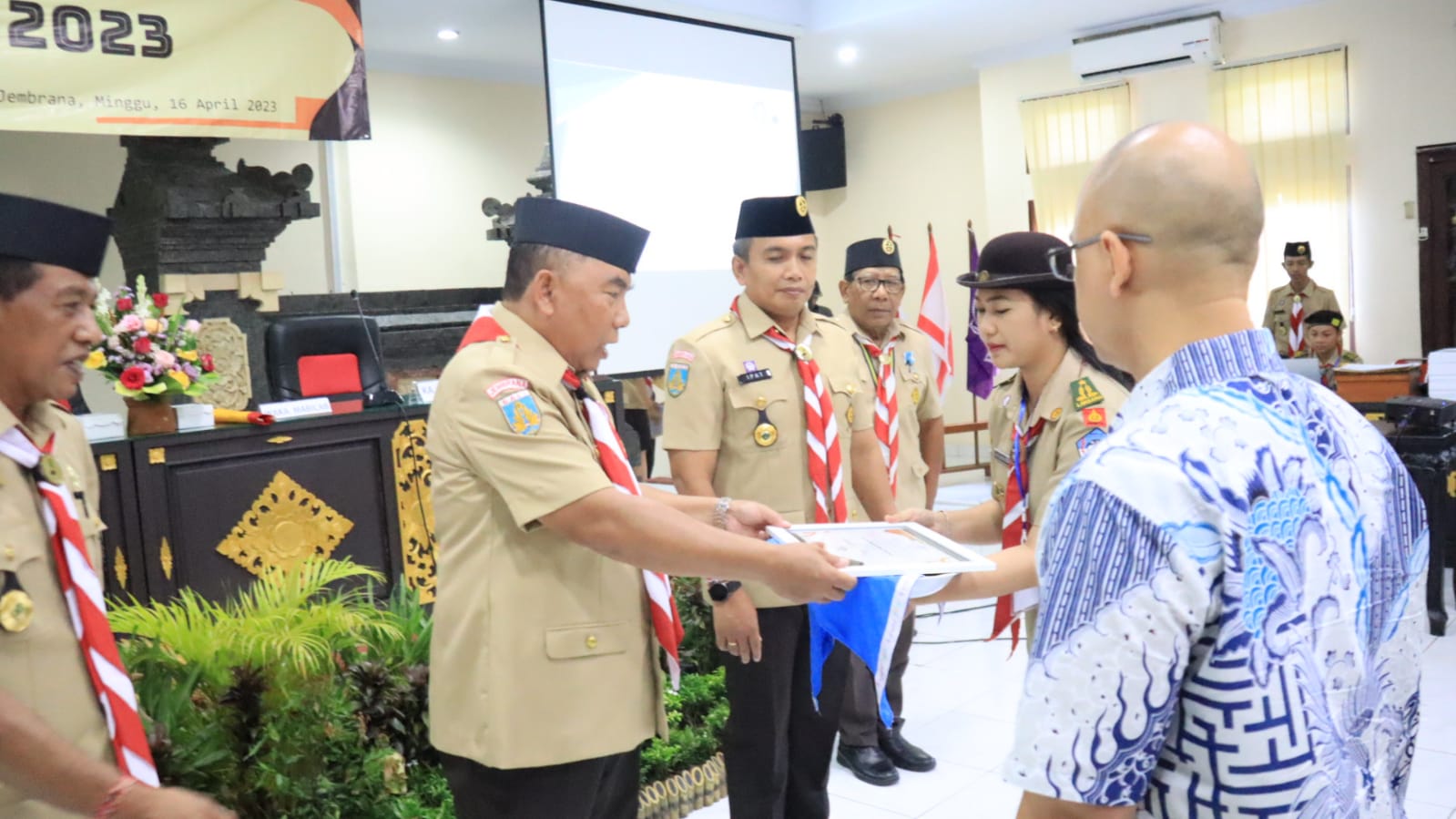 Kwartir Cabang Gerakan Pramuka Jembrana menggelar Rapat Kerja Cabang (Rakercab) Tahun 2023 di Aula Lantai II Jimbarwana, Kantor Bupati Jembrana, Minggu (16/4). Rakercab yang baru bisa dilaksanakan usai pandemi Covid-19 dibuka oleh Bupati Jembrana I Nengah Tamba yang juga selaku Ketua Majelis Pembimbing Cabang (Kamabicab) Kwartir Cabang Gerakan Pramuka Jembrana.