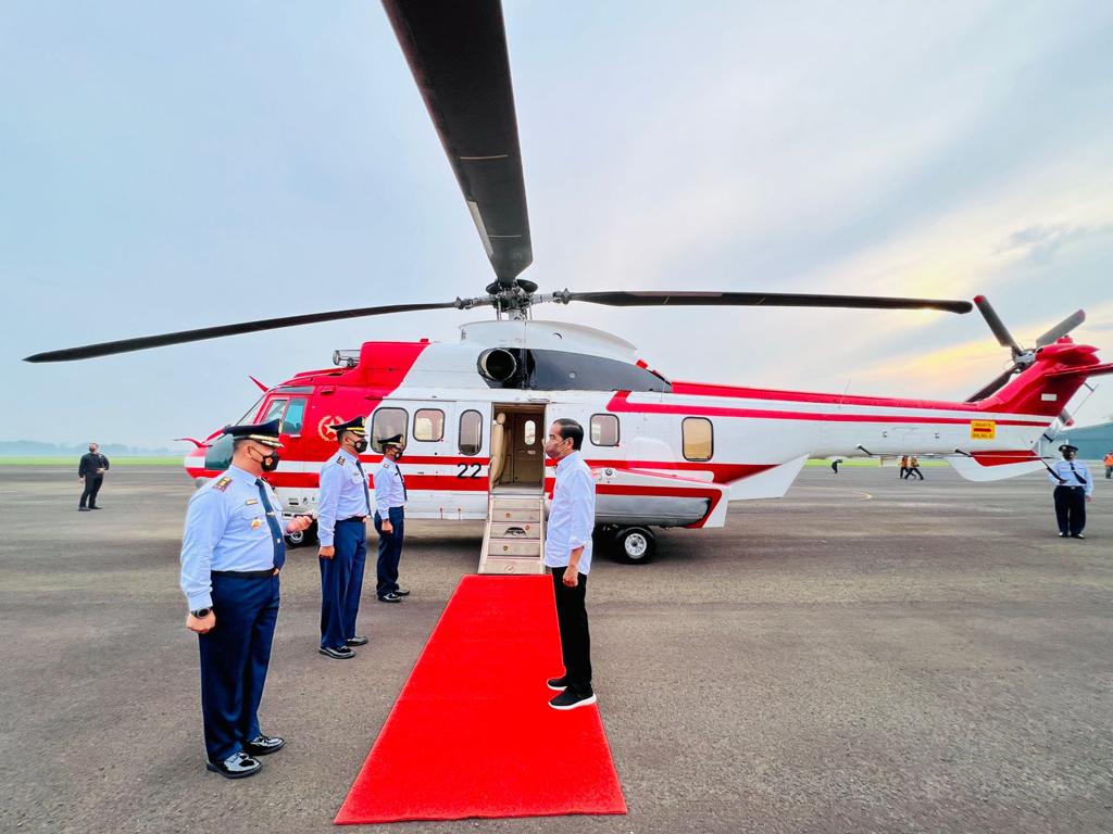Presiden Joko Widodo melakukan kunjungan kerja ke Provinsi Banten dan Provinsi Jawa Barat pada Jumat, 17 Juni 2022. Presiden dan rombongan lepas landas dengan menggunakan helikopter Super Puma TNI AU dari Pangkalan TNI AU Atang Sendjaja, Kabupaten Bogor, sekitar pukul 07.00 WIB.