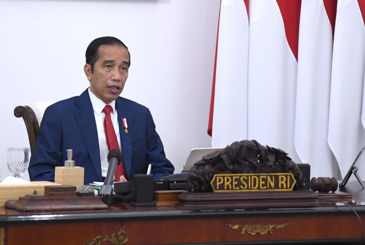 Presiden Joko Widodo memimpin rapat terbatas yang membahas mengenai "Percepatan Penyerapan Garam Rakyat" melalui konferensi video dari Istana Merdeka, Jakarta, Senin, 5 Oktober 2020.
