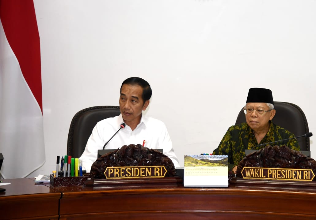 Presiden Joko Widodo menggelar rapat terbatas di Kantor Presiden, Jakarta, pada Rabu sore, 4 Desember 2019, untuk membahas pengelolaan cadangan beras pemerintah.