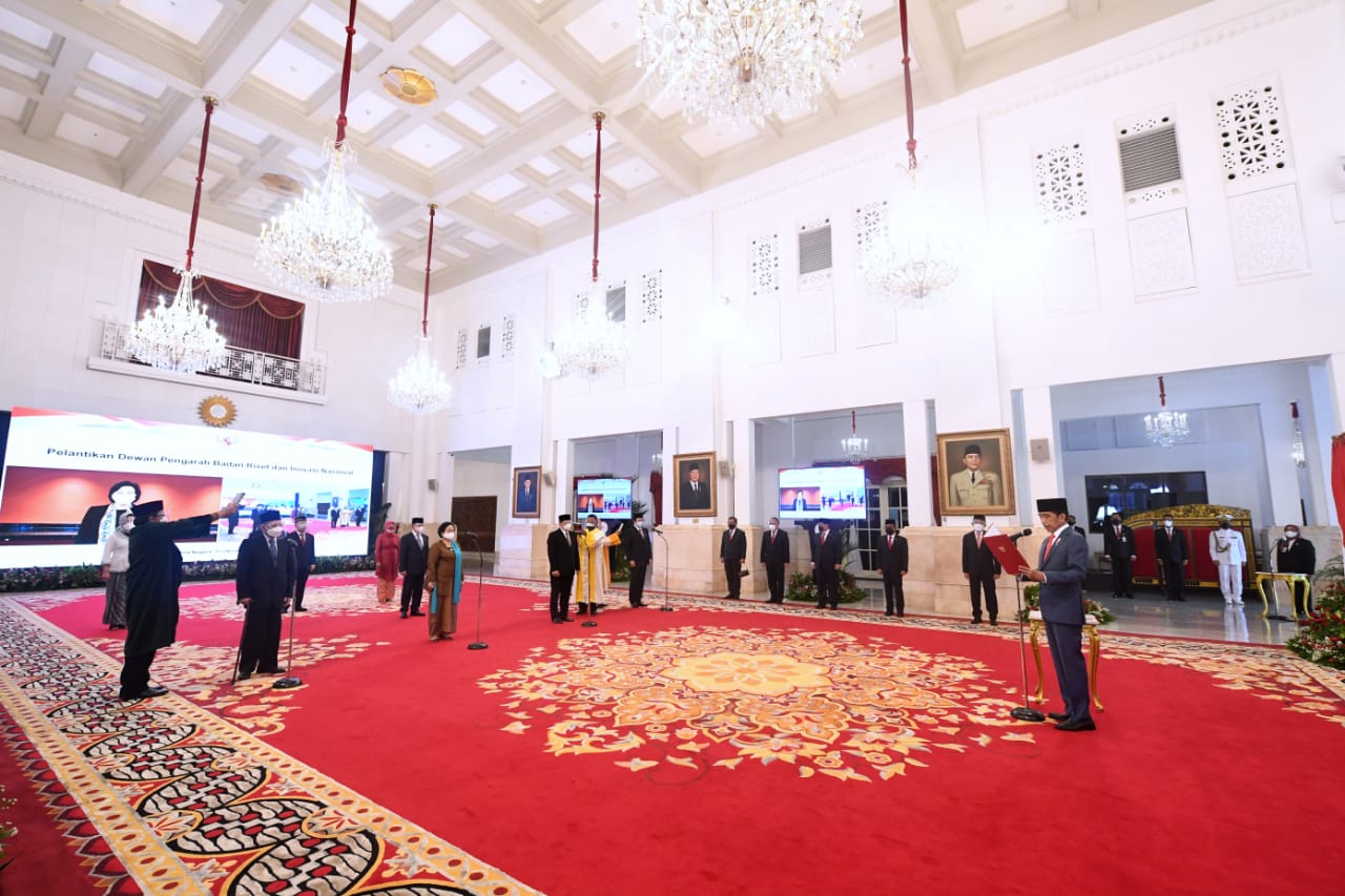 Presiden Joko Widodo melantik dan mengambil sumpah jabatan Dewan Pengarah Badan Riset dan Inovasi Nasional (BRIN). Acara pelantikan berlangsung di Istana Negara, Jakarta, pada Rabu, 13 Oktober 2021, dengan menerapkan protokol kesehatan secara ketat.