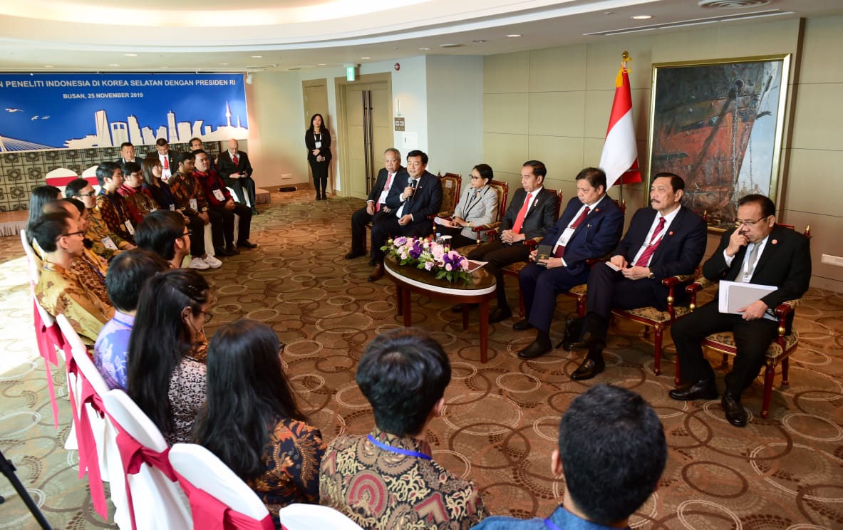 “Kita tidak ingin pikiran kita itu semuanya kita kerjakan, dan enggak ada hasilnya semuanya. Jadi pemerintah sekarang ini ingin bekerjanya fokus, gampang dikontrol, dicek, diawasi, sehingga tidak semuanya. Memang ini kita baru menata untuk riset dan inovasi,” kata Presiden Jokowi di Hotel Lotte, Busan, Senin, 25 November 2019.
