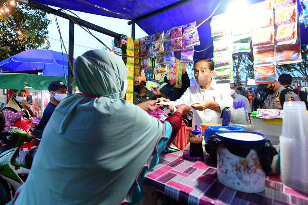 Kepala Negara memberikan bantuan sebesar Rp1,2 juta per orang yang dapat digunakan untuk menambah modal para pedagang yang terdampak pandemi Covid-19.