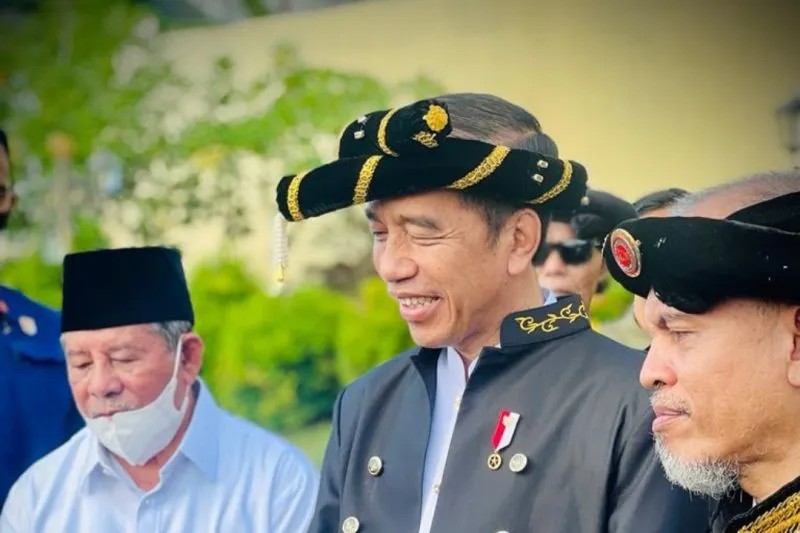 “Saya mendapatkan gelar dari Kesultanan Ternate, dari Sultan Ternate Ke-49 Hidayatullah Sjah dengan gelar Dada Madopo Malomo. Nanti artinya seperti apa, tanyakan langsung kepada Bapak Sultan. Akan tetapi, ini adat, tradisi, kearifan lokal memang harus terus kita jaga dan terus kita rawat,” kata Presiden usai menerima anugerah gelar adat Dada Madopo Malomo dari Kesultanan Ternate di Kedaton Sultan Ternate, Rabu.