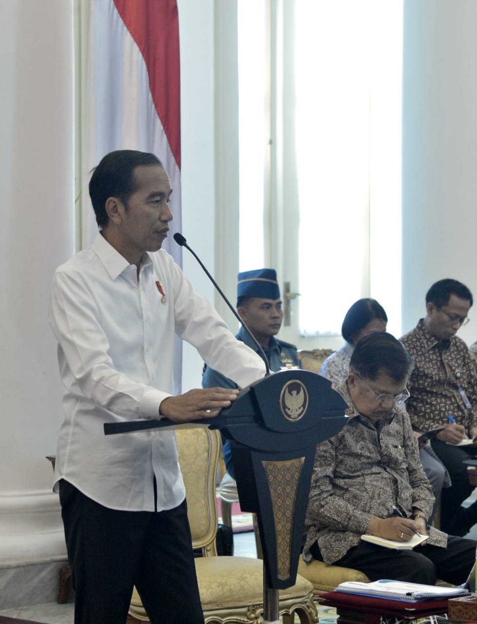 Presiden Jokowidodo saat memimpin sidang kabinet paripurna di Istana Kepresidenan Bogor, Jawa Barat, Selasa, 23 April 2019.
