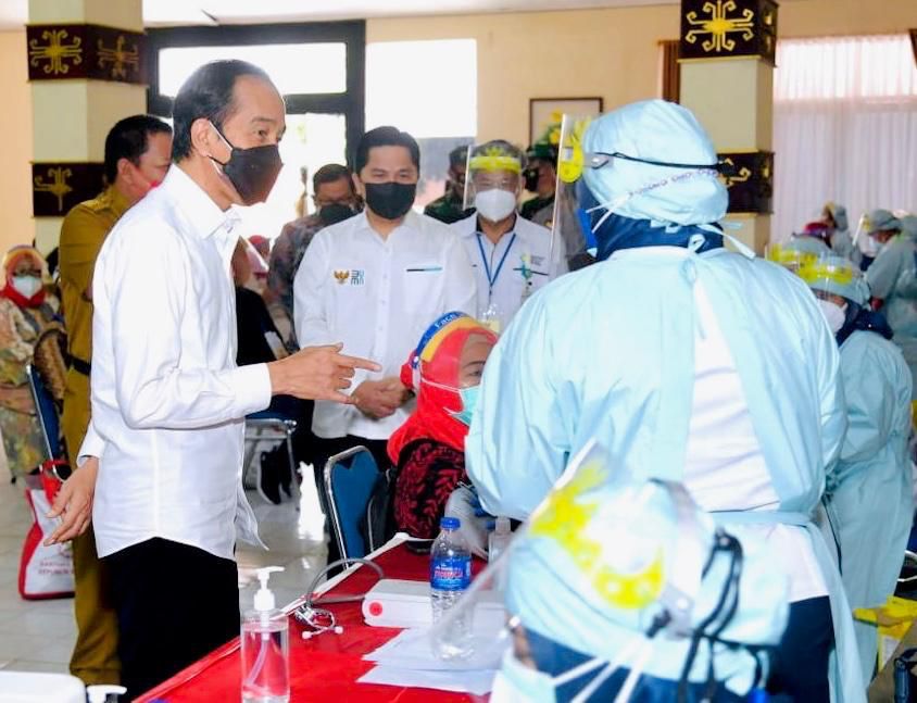 Presiden Joko Widodo mengawali kunjungan kerjanya di Provinsi Lampung dengan meninjau langsung program vaksinasi Covid-19 untuk masyarakat di Politeknik Kesehatan (Poltekkes) Tanjung Karang, Kecamatan Natar, Kabupaten Lampung Selatan, pada Kamis, 2 September 2021. Kegiatan vaksinasi ini dilaksanakan kepada 100 pelaku usaha mikro kecil menengah (UMKM).
