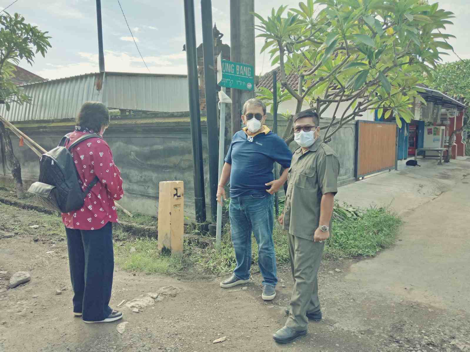 Rombongan didampingi Kelian Adat Banjar Kertagraha Kadek Udana, Wakil Kelian Adat Made Rembe Astawa, Kelian Tempek Abian Pandan Wayan Latria, Kelian Tempek Penyarikan Ketut Sukirtia yang juga menjelaskan kondisi kerusakan jalan dan banyak keluhan warga atas kondisi jalan ini.