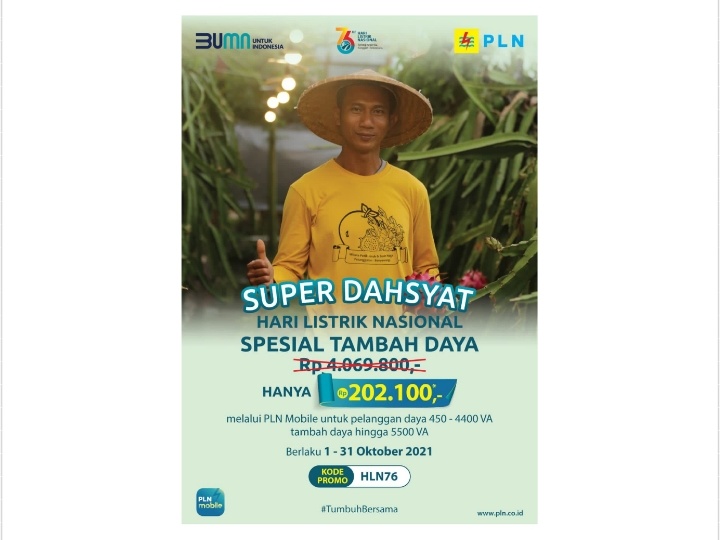 “PLN masih membuka kesempatan untuk pelanggan mengikuti dan manfaatkan promo listrik Super Dahsyat. Semoga promo tambah daya ini mendukung menggeliatnya ekonomi kerakyatan di Indonesia,” jelasnya.