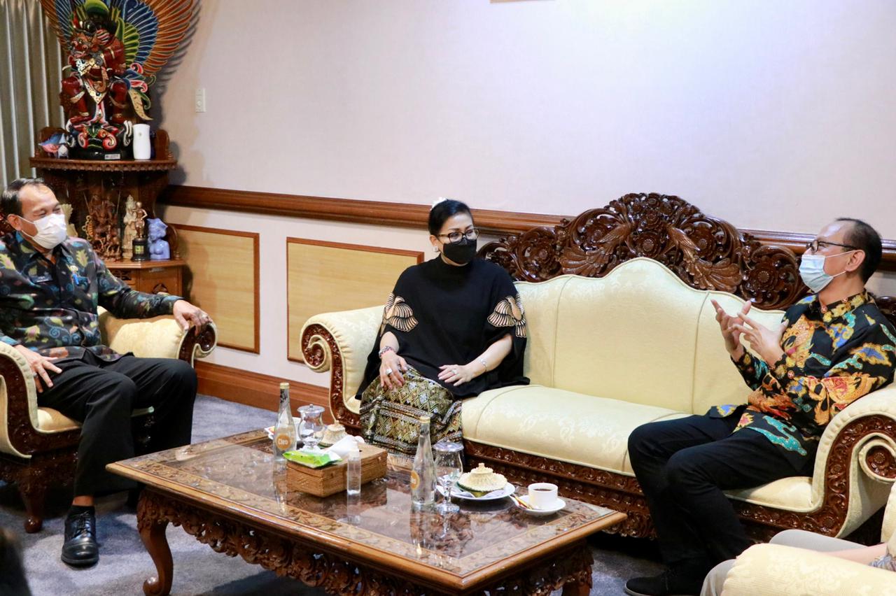 Ketua Dewan Kerajinan Nasional Daerah (Dekranasda) Provinsi Bali Ny. Putri Suastini Koster menerima audiensi Direktur Mangga Dua Square Ida Bagus Ketut Kusumajati di Ruang Pertemuan Taman Budaya, Denpasar, Rabu (16/2/2022).