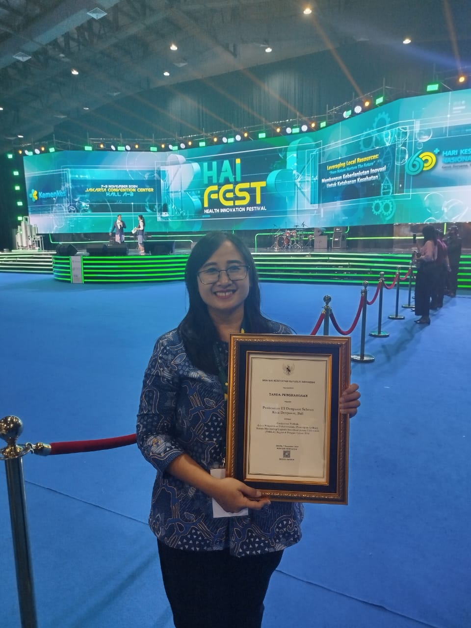 Ket foto : Puskemas III Denpasar Selatan saat meraih Penghargaan Puskesmas Terbaik Dalam Pengelolaan Vaksin melalui Penerapan Aplikasi Sistem Monitoring Logistik Imunisasi Secara Elektronik (SMILE) Regional Tengah Tahun 2024 serangkaian Hari Kesehatan Nasional (HKN) ke-60 Tahun 2024 di Jakarta beberapa waktu lalu.