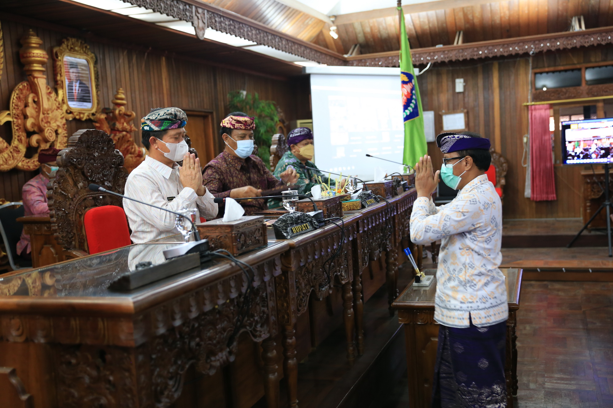Rapat dipimpin Ketua DPRD Kabupaten Klungkung, Anak Agung Gede Anom. Hadir para Wakil Ketua dan anggota DPRD Kabupaten Klungkung, Forkompinda Kabupaten Klungkung serta OPD Pemkab Klungkung yang mengikuti rapat tersebut secara virtual.
