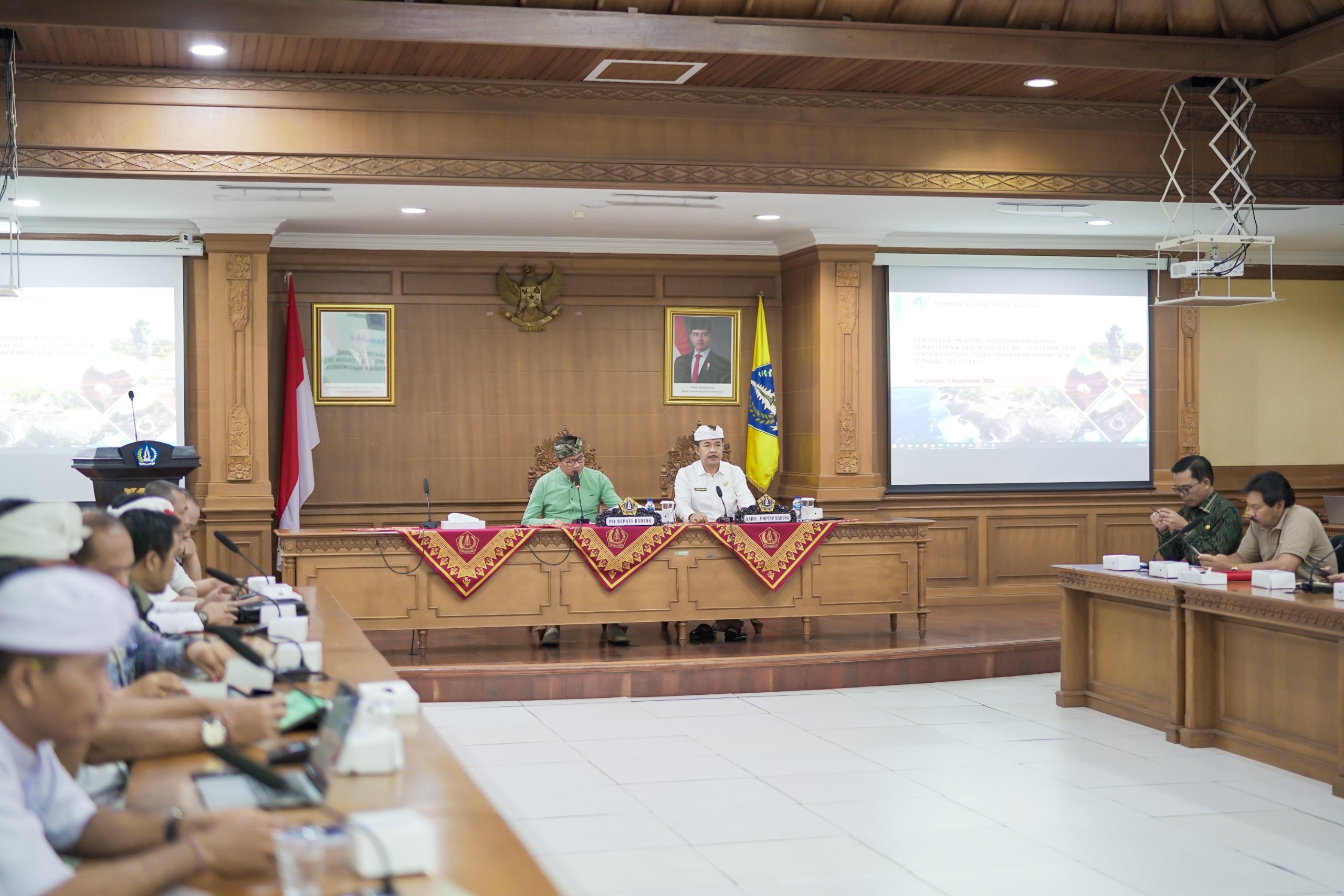 Plt. Bupati Badung I Ketut Suiasa menghadiri Rapat Koordinasi dengan Sekretaris Daerah dan Dinas Modal dan Pelayanan Terpadu Satu Pintu (DPMPTSP) Kabupaten/Kota se-Bali terkait dengan tindak lanjut Keputusan Menteri Koordinator Bidang Kemaritiman dan Investasi No. 163 Tahun 2024 Tentang Satuan Tugas Penerapan Pariwisata Berkualitas di Bali, bertempat di Ruang Rapat Kriya Gosana, Puspem Badung, Jumat (1/11).
