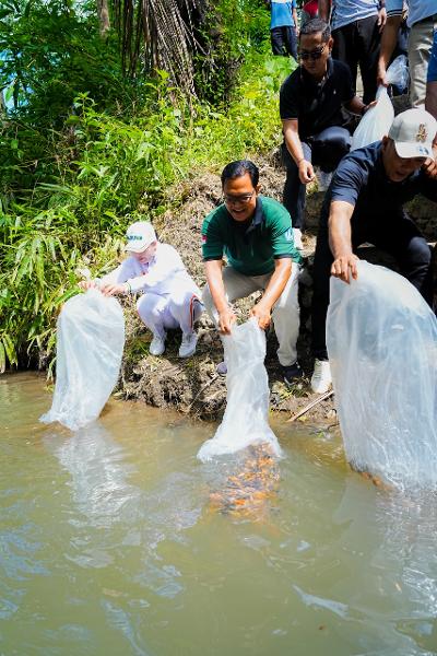 Selain aksi kemanusiaan, kegiatan berlanjut dengan penebaran 10.000 benih ikan yang difasilitasi oleh Dinas Perikanan Kabupaten Badung serta penanaman pohon cempaka bersama Dinas Pertanian. Nyonya Rasniathi juga menekankan pentingnya pengelolaan sampah berbasis sumber yang kini tengah digencarkan Pemerintah Kabupaten Badung.