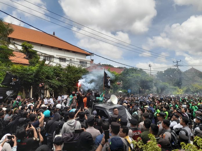 Polda Bali menegaskan tindakan tegas terukur diambil untuk membubarkan massa karena aksi tersebut sudah membahayakan petugas, warga sekitar, serta merusak fasilitas umum.