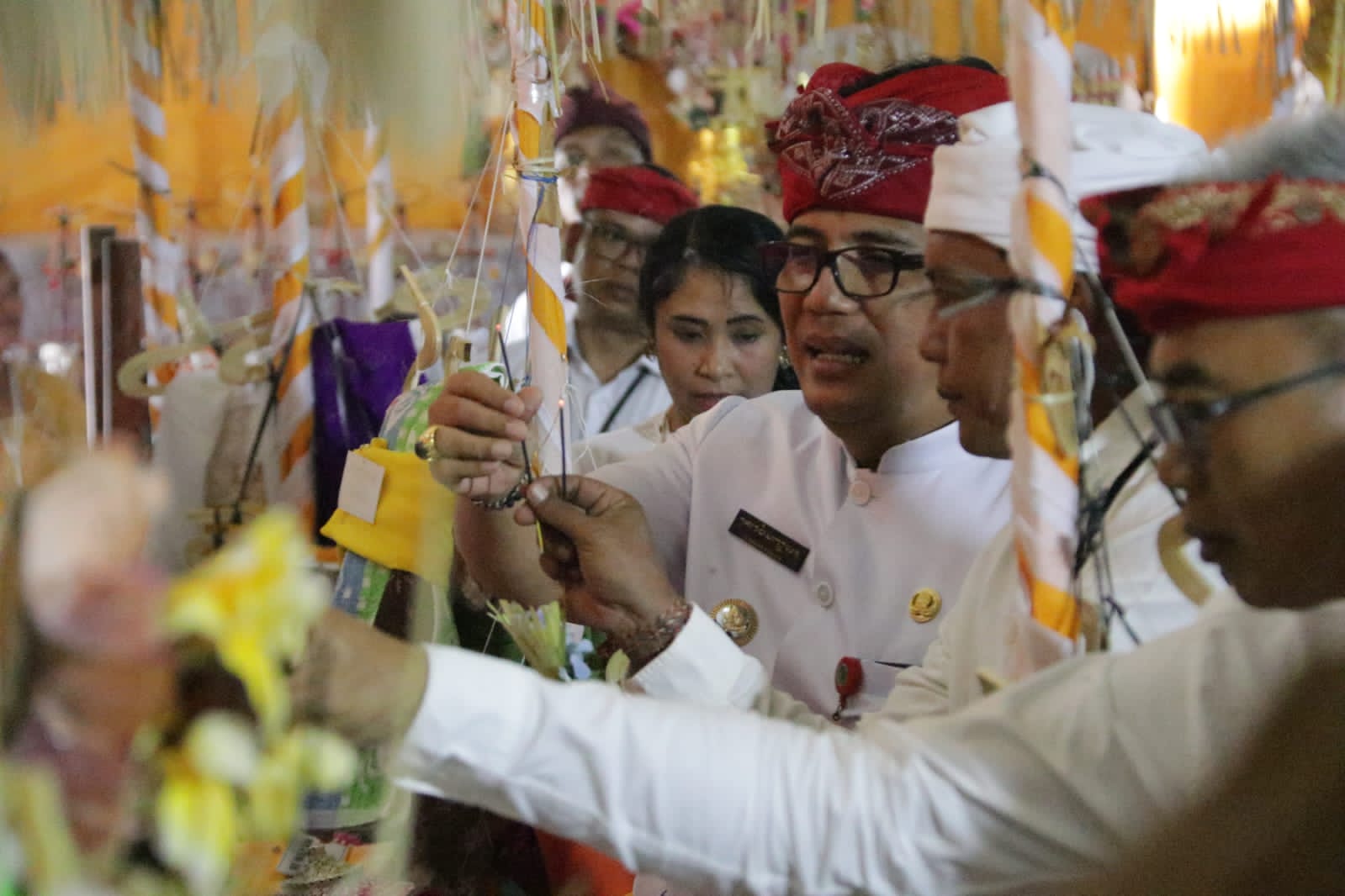 Seperti yang sering disampaikannya, unsur Tri Upa Saksi ritatkala upacara tersebut dibangun oleh masyarakat dengan rasa gotong royong dan tulus ikhlas. Yang kedua ialah kepuput oleh sang sulinggih dan yang ketiga yaitu diberikan doa oleh upasaksi atau murdaning jagat. “Maka dari itu, saya di Pemerintah Kabupaten Tabanan hadir di tengah-tengah masyarakat guna saksi, mangda upacara yadnya semeton sareng sami niki memargi antar, labda karya, sida sidaningdon, itu tujuan akhirnya” jelasnya.