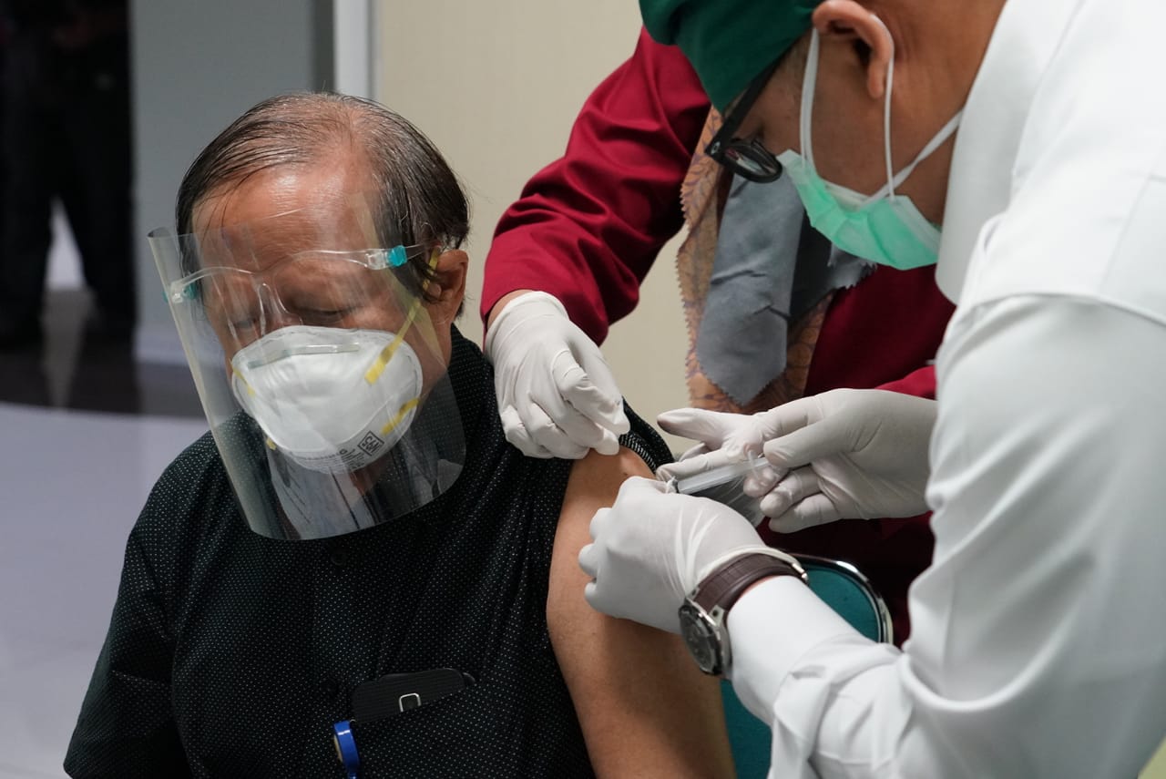 RSUP Dr. Cipto Mangunkusumo gelar vaksinasi COVID-19 perdana bagi usia diatas 60 tahun pada Senin (8/2). Per hari ini vaksinasi dilakukan kepada 15 dokter.