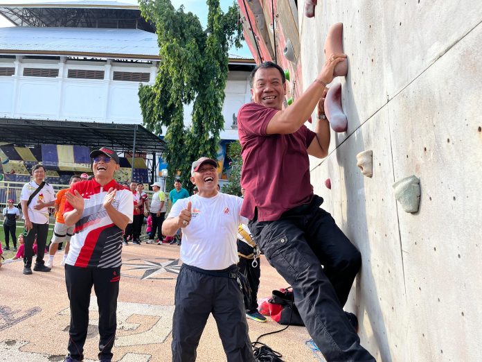 Penjabat (Pj) Bupati Buleleng Ketut Lihadnyana menyalurkan hibah sebesar Rp1 miliar untuk rehabilitasi sarana olahraga panjat tebing. Sebelum rehabilitasi dilakukan, Pj Bupati Lihadnyana meninjau sarana panjat tebing yang telah tersedia.