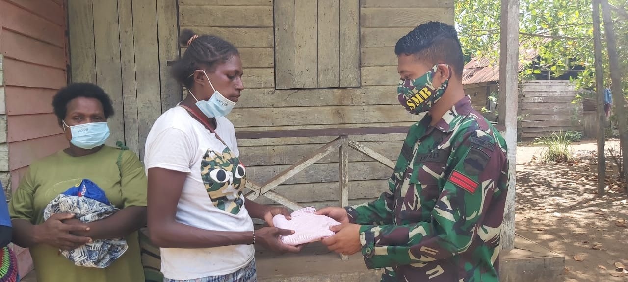 Wujud kepedulian terhadap warga sekaligus untuk mempererat tali persaudaraan, Satgas Pamtas Yonif 125/Simbisa di bawah Komando Pelaksana Operasi (Kolakops) Korem 174/ATW menyambangi warga dan membagikan pakaian layak pakai di Kampung Kondo, Distrik Naukenjerai.