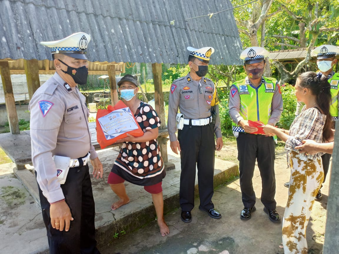 Satuan Lalulintas (Satlantas) Polres Jembrana memberikan bantuan sembako kepada lima (5) korban kecelakaan lalu lintas, Minggu (4/12/2022).