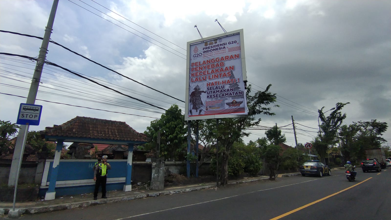 Satlantas Polres Jembrana Pasang Baliho Himbauan Keselamatan Berlalu Lintas