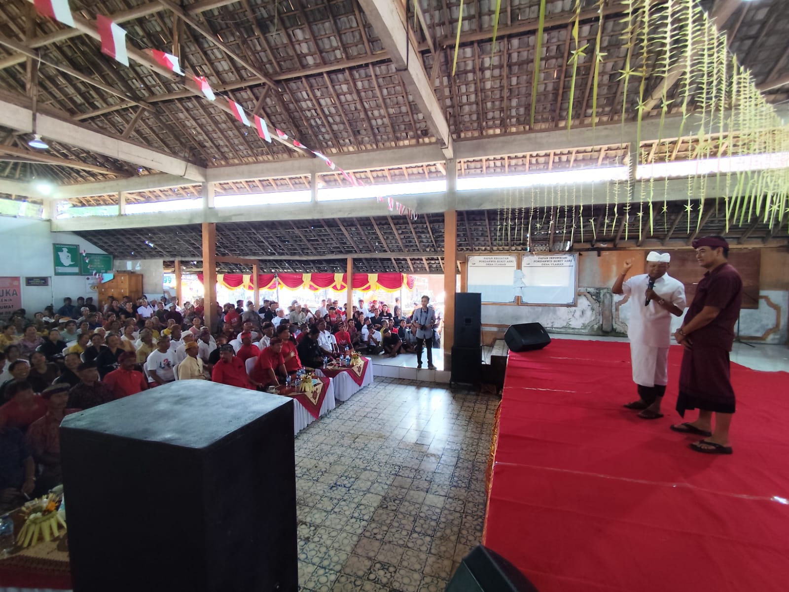 “Tiang belum pernah ke wantilan desa ini. Banyak bolongnya, tiang akan bantu perbaiki. Tanpa aspirasi pun tiang wajib bantu bangun wantilan ini dan pura di sini,” tegas Koster.