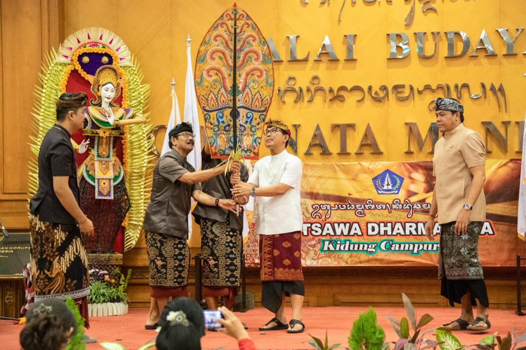 Mewakili Bupati Badung, Sekretaris Daerah Kabupaten Badung I Wayan Adi Arnawa membuka acara Utsawa Dharma Gita Kabupaten Badung tahun 2023 di Lobby Balai Budaya Giri Nata Mandala, Puspem Badung, Senin (29/5). Kegiatan yang diikuti lebih dari 402 peserta perwakilan dari 6 (enam) Kecamatan se-Badung ini turut dihadiri Ketua Komisi IV DPRD Kabupaten Badung I Made Suwardana, Camat se-Badung, Kepala Kementrian Agama Kabupaten Badung, Ketua Listibya Kabupaten Badung, Ketua Widyasabha Kabupaten Badung, Ketua Widyasabha Kecamatan se-Kabupaten Badung, Ketua Widyasabha Desa se-Kabupaten Badung, Koordinator Penyuluh Bahasa Bali Kabupaten Badung, Koordinator Penyuluh Bahasa Bali Kecamatan se-Kabupaten Badung beserta dinas terkait di lingkungan Pemkab Badung.